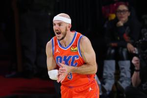 本场比赛,雷霆球员卡鲁索面对旧主表现出色,替补24分钟8投7中,三分4中3、罚球1中0拿到17分1篮板2助攻1抢断,正负值+19最高。
