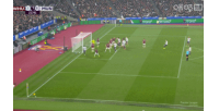 比赛第22分钟,曼联左侧角球机会,卢克·肖禁区内的抢点攻门被万-比萨卡在门线上用膝盖完成解围。