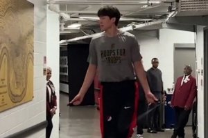 相关新闻>>>今天有机会吗?杨瀚森赛前热身秀各种扣篮 三分球也信手拈来