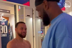 体育资讯2月16日讯 今天将进行全明星正赛较量,赛前一众球星在更衣室打招呼。