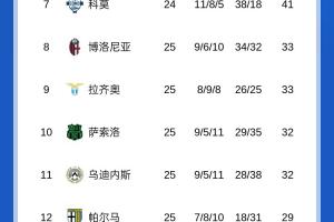【意甲完整积分榜】