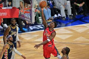 体育资讯2月16日讯 NBA全明星正赛冠军赛,新星队47-21大胜星条队夺冠。