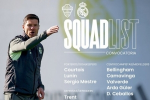体育资讯11月22日讯 本轮西甲皇马将迎战埃尔切,球队官方也公布了本场比赛大名单,米利唐、阿拉巴缺战,具体如下: