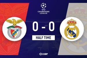 体育资讯2月18日讯 欧冠1/8决赛附加赛首回合,本菲卡坐镇主场光明球场迎战皇家马德里。上半场,维尼修斯失良机,姆巴佩三次错失机会。半场战罢,皇马0-0本菲卡。