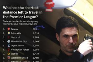 随着赛季临近尾声,排名争夺进入白热化,各支球队都在寻找任何微小的优势。而与曼城相比,阿森纳剩余的英超客场旅途几乎他们的一半,同时也是英超球队中最短的。