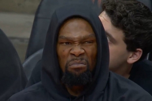 (该瞬间发生在阿隆·霍勒迪命中高难三分后)