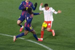 “根据规则第12条,鲁莽踩踏构成犯规并应予以警告。争夺球权并不能免除犯规。如果一名球员用不必要的力量踩踏对手,就必须受到处罚。对于CTA(裁判技术委员会)来说,赫罗纳前锋阻止了孔德的防守动作,因此应该判罚犯规并出示黄牌。VAR本应介入,因为这是一个明显的、清晰的、明白无误的错误,应该改变判罚并宣布进球无效。