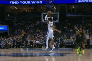 晚了一点点!波杰姆斯基后场超远三分命中 可惜超时在先