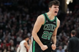 据数据媒体StatMuse统计,在绿军的队史上,仅有伯德在新秀赛季打出过这样的单场数据。