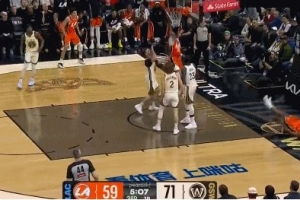 GIF-加兰助飞伦纳德空接不中,加兰补篮打进