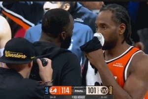 GIF-加兰也和追梦拥抱聊一聊,伦纳德和库里拥抱也聊一下