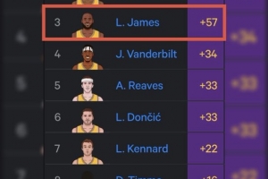 3、詹姆斯 +57