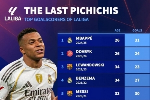 体育资讯11月25日讯 姆巴佩领取上赛季皮奇奇奖(马卡报颁发的西甲金靴),德国转会市场盘点了近10年皮奇奇奖得主,梅西连续5年获奖。
