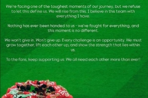 对于球迷们,请继续支持我们。我们比任何时候都更需要彼此的力量!