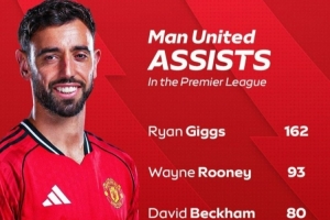 B费曼联生涯英超助攻数已经达到56次,超越名宿斯科尔斯,以下为曼联队史英超助攻榜:
