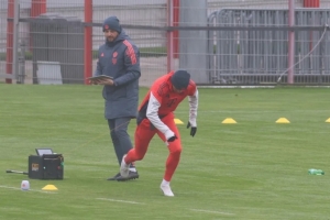 在拜仁全队从柏林联返回慕尼黑的路上时,穆西亚拉就已经在慕尼黑的训练基地进行康复训练。