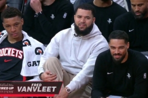 在比赛中,狄龙和在替补席上的范弗里特互动,后者说道:“40分,你有得过40分吗?让我见识一次,让我们看看。”