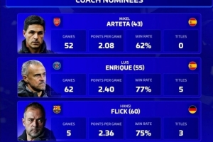 体育资讯12月6日讯 德国转会市场列出了2025年最佳教练候选名单,阿尔特塔、恩里克、弗里克、孔帕尼在列。