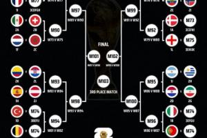除东道主之外的9个种子队为西班牙(H组)、阿根廷(J组)、法国(I组)、英格兰(L组)、巴西(C组)、葡萄牙(K组)、荷兰(F组)、比利时(G组)、德国(E组),若9队都以小组头名出线并赢下1/16决赛,德国(E组)和法国(E组)将在1/8决赛相遇,而其他7个种子球队不会相遇。
