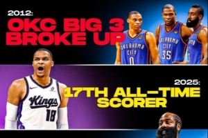 威少空切迅速弹起空中点篮命中!生涯得分超越邓肯升至历史第17!