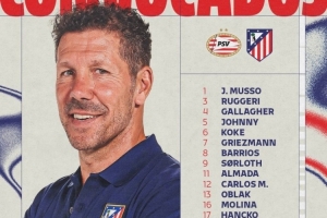 前锋:7-格列兹曼、9-瑟尔洛特、11-阿尔马达、19-阿尔瓦雷斯、20-朱利亚诺-西蒙尼、22-拉斯帕多里、23-冈萨雷斯