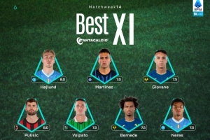 体育资讯12月9日讯 意甲第14轮战罢,联赛官方评本轮最佳阵,霍伊伦、劳塔罗、普利西奇在列。