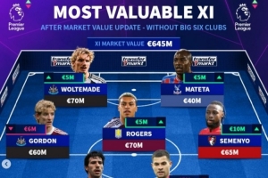 前锋:安东尼·戈登(纽卡,6000万欧)、沃尔特马德(纽卡,7000万欧)、马特塔(水晶宫,4000万欧)、塞梅尼奥(伯恩茅斯,6500万欧)