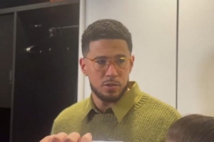 赛后布克接受采访,谈到了他最后3.9秒防守詹姆斯被吹三分犯规,他说:“我得查查规则手册,我一直听人说手是球的一部分,但是具体我也不太清楚,现在比赛都结束了。我其实根本就不该在那个位置犯那个规,但之前那个回合,狄龙投三分的时候勒布朗也撞倒了他。”