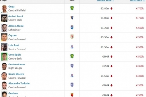 附中超身价下降榜: