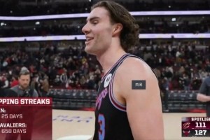 据统计,这是公牛在658天以来首次赢骑士,他们上场赢骑士可以追溯到2024年2月29日。