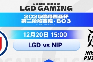 体育资讯12月20日讯 2025年德玛西亚杯来到第二阶段,今天的首场比赛是LGD对阵NIP!