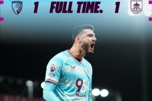 体育资讯12月21日讯 本轮英超焦点战,伯恩利在客场1-1绝平伯恩茅斯,布罗亚第90分钟为客队打进绝平球。