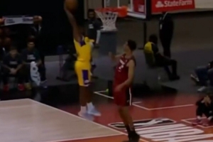笑疯了刘冠杉扣篮前想把篮网用球砸下来 结果三投不中