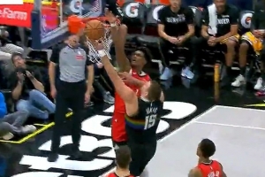 解说:坎宁安承担大量的组织和不轻的防守任务 他达到了一阵水准