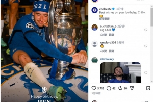 切尔西官方社媒晒出奇尔维尔效力期间与奖杯的合照,庆祝他的29岁生日。