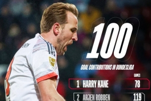体育资讯12月22日讯 德甲第15轮,拜仁客场4-0大胜海登海姆。本场比赛,凯恩打入一球,这是他在德甲参与的第100个进球,具体数据为81个进球和19个助攻,他只用78场联赛就达成这一成就。