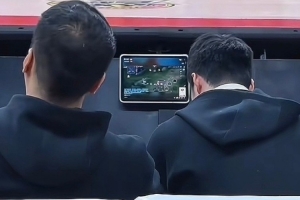 体育资讯12月23日讯 媒体人导演我躺哪今天在微博上晒出一张宁波男篮比赛期间、工作人员的屏幕在播放游戏直播画面的照片,并写道:“这CBA一天天太精彩了,在昨晚吉林对阵宁波的比赛中,有球迷在现场拍到宁波男篮替补席的工作人员正在看游戏直播。”