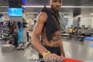 库明加抽到斯潘塞,礼物:更多的出场时间(More playing time),库明加说完拍了两下抽奖箱离去