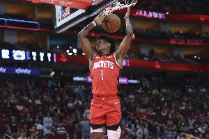 火箭球员阿门上半场依旧冲击力十足,进攻端多次冲击内线拿分,前场篮板抢得也很猛,还有空接暴扣的精彩表现。