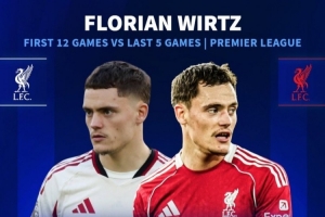 德转也统计对比了维尔茨的英超表现:前12场出战693分钟,贡献0球0助攻;近5场出战491分钟,已1球2助攻。