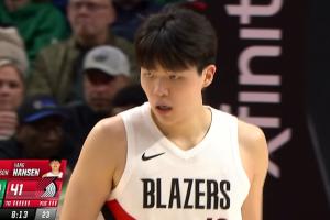 GIF-杨瀚森三分速射得手!随后朝队友开枪了哈哈哈!