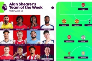 体育资讯12月29日讯 英超第18轮战罢,阿兰·希勒评出本轮最佳阵,拉亚、维尔茨、厄德高、谢尔基在列。