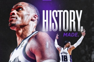 威少得到17分,常规赛生涯总得分超越奥斯卡·罗伯特森,加冕NBA历史控卫得分王。