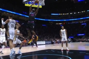 申京本赛季第3次以70+%命中率拿到25+ 中锋里仅次于约基奇和杜伦