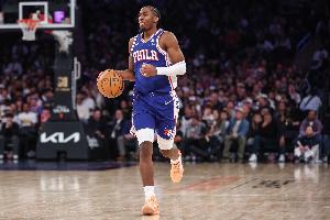 第一节,76人后卫马克西火力全开,打满12分钟9投6中,三分7中4拿到16分4助攻1抢断,正负值+7。