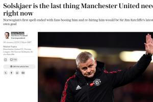体育资讯01月09日讯 看上去索尔斯克亚很可能将再一次出任曼联的临时主帅,但电讯报记者James Ducker强烈否定这一决策,他将索尔斯克亚称为“曼联此刻最不需要的”。