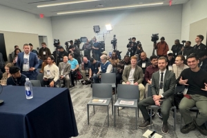 TA名记David Aldridge发文,晒出了他在奇才媒体室等候赛前采访的照片,同时写道:“三天前,这间(奇才队的)媒体室里只有五个人,我就是其中之一……”