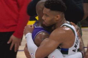 GIF-詹姆斯与字母哥拥抱