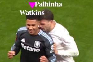 在终场哨声吹响后,维拉前锋沃特金斯来到底线面向看台庆祝,看似有意无意的身体接触惹恼了帕利尼亚,后者将沃特金斯推搡出场外,瞬间点燃两队球员的情绪。