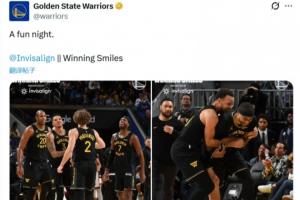 勇士官推随后晒出该场比赛的照片,并配文道:“一个有趣的夜晚。@invisalign,胜利的微笑。”
